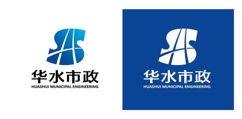 “H”用了反白的表现手法,意象地描画出桥梁或者道路,象征着华水在大市政的各个领域发展的宽度,技术和专业的高度,也象征着华水人志存高远、砥励前行、追求卓越的决心。
